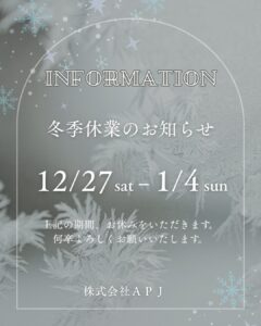 誠に勝手ながら、下記日程にて【年末年始休業】とさせていただきます。